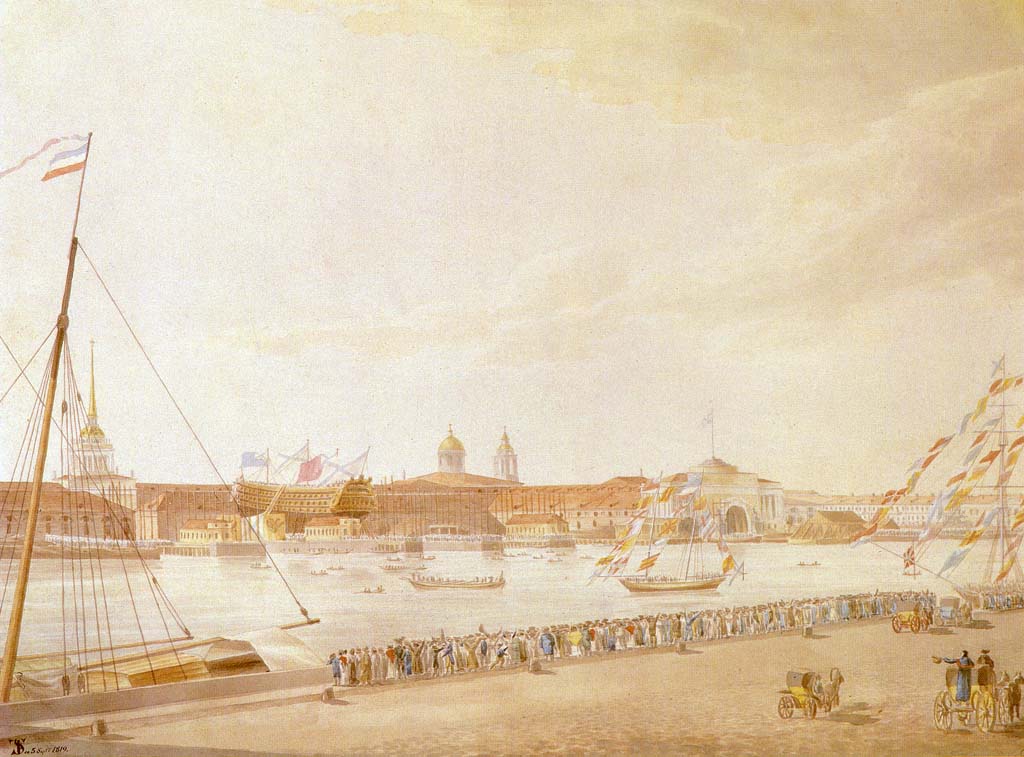 29 апреля (10 мая) 1704 года, то есть менее, чем через год после основания Санкт-Петербурга, на левом берегу Невы была заложена Адмиралтейская верфь. Строительство вокруг неё земляных насыпей, бастионов и рвов превратили верфь в крепость, которая вместе с расположенной у правого берега Невы Петропавловской должна была дать отпор шведам в случае попытки взятия ими реванша.