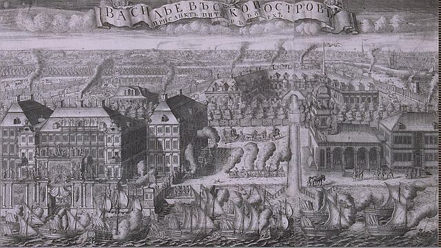 Сразу же после основания Санкт-Петербурга его генерал-губернатором был назначен ближайший сподвижник Петра Великого Александр Данилович Меншиков (1673 - 1729). Пётр I "с царского плеча" подарил "милому другу Алексашке" весь Васильевский остров - самый большой в дельте Невы. Правда, после того, как первые генеральные архитекторы столицы Жан-Батист Александр Леблон и Доменико Трезини предложили устроить на Васильевском острове центр города, Пётр остров у Меншикова отобрал, однако, Александр Данилович к тому времени уже вовсю строил свои "палатки" - великолепные чертоги на набережной Невы. Меншиковский дворец, возведённый в архитектурном стиле петровского барокко по проекту Джованни Мария Фонтана и Готфрида Иоганна Шеделя в 1710 - 1714 годах (интерьеры перестраивались до 1727 года), считался самым роскошным зданием петровского Петербурга. Пётр I, не обладавший подобным великолепием, неоднократно забирал дворец у владельца для организации в нём представительских мероприятий международного масштаба, например, "свадьбы карликов" 14 ноября 1710 года или бракосочетания царевны Анны Иоанновны и герцога Курляндского тремя днями ранее.