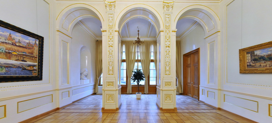 Посетители Музея Фаберже попадают в анфиладу великолепных залов, реставрация интерьеров которых продолжалась семь лет. В Рыцарском зале, Красной, Белой и Голубой гостиных представлены изделия из серебра - сервизы, чернильные приборы, настольные украшения, изготовленные как фирмой Фаберже, так и его современниками - конкурентами и партнёрами И.П.Сазиковым, П.А.Овчинниковым, Ф.И.Рюккертом. В Золотой гостиной - эксклюзивные изделия, преподносившиеся в виде представительских подарков, и "обже де фантази" - уникальные безделушки; в кабинете графа Шувалова и в буфетной - картинная галерея, живописные шедевры И.К.Айвазовского, К.Е.Маковского, А.А.Харламова, Г.И.Семирадского, П.О.Ренуара и других выдающихся мастеров России и Европы. В центральном зале - Синей гостиной - посетители увидят самое сокровенное - 12 яиц и их сюрпризы: 9 - императорских, 2 - владелицы золотых приисков В.П.Базановой и одно - герцогини Консуэло Мальборо.