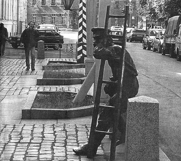 В 1989 году вдоль Одесской улицы были расставлены копии старинных петербургских уличных фонарей (при том, что в историческом центре города, например, в Екатерининском саду перед Александринским театром или вокруг памятника Николаю I на Исаакиевской площади, сохранились и оригинальные фонари), а рядом с ними был "усажен" бронзовый фонарщик (авторы скульптуры - Б.М.Сергеев и О.Н.Панкратова). До появления электрического освещения фонарщик, ответственный за данную улицу или, в случае её большой протяжённости, за её отрезок, каждый вечер, перебегая от столба к столбу и взбираясь наверх по лестнице, заливал в чашу масло или керосин, менял при необходимости стекло или фитиль и в кратчайший срок освещал всю улицу. Поэтому рядом с фонарщиком мы видим лестницу и бутыль, а в дореволюционные учебники арифметики непременно была включена задача, предлагавшая ученикам рассчитать, исходя из длины улицы и расстояния между фонарями, время, которое потребуется фонарщику, чтобы завершить работу.