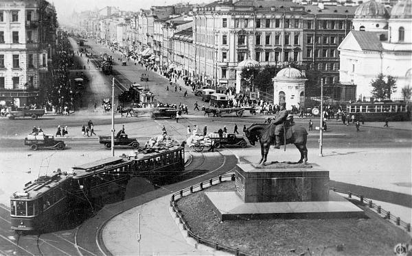 Первый скульптурный памятник на Знаменской площади - конная статуя императора Александра III работы Павла (Паоло) Петровича Трубецкого (1866 - 1938) - был открыт 23 мая (5 июня) 1909 года. В 1937 году памятник был передан Русскому музею и сейчас находится в парадном дворе Мраморного дворца (Миллионная улица, 5 - 5А).