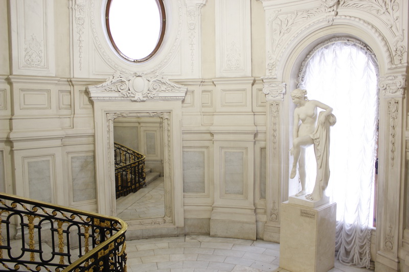 В 1820-х годах под руководством архитектора Василия Алексеевича Глинки особняк Румянцева был реконструирован с учётом размещения в нём уникальной библиотеки канцлера (28 тысяч томов, 104 первопечатные книги-инкунабулы, старинные рукописи и древнерусские грамоты), а также собрания минералов и произведений искусства, в составе которого имелись, в частности, подлинные работы Рембрандта. По завещанию канцлера после его смерти (3 (15) января 1826 года) в его особняке 28 мая 1831 года был открыт Румянцевский музей, перемещённый вместе с книжным собранием в 1861 году в Москву и ставший основой Румянцевской библиотеки (с 1924 года - Государственной библиотеки СССР имени В. И. Ленина; ныне - Российской Государственной). Особняк же на Английской набережной, перестроенный в 1863 - 1865 годах архитектором Антоном Иоганновичем Цимом, сменил нескольких владельцев (о том, что когда-то здесь был Храм искусств, сегодня напоминает рельефный фриз "Аполлон-Мусагет на Парнасе в окружении девяти Муз и матери их Мнемозины" на фронтоне) и в 1882 году был приобретён Зинаидой Дмитриевной Богарне, супругой герцога Евгения Максимилиановича Лейхтенбергского, приходившегося одновременно внуком и российскому императору Николаю I, и пасынку Наполеона, генералу Великой армии Евгению Богарне! В 1882 - 1886 годах архитектор Александр Александрович Степанов провёл очередную реконструкцию особняка.