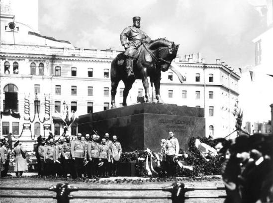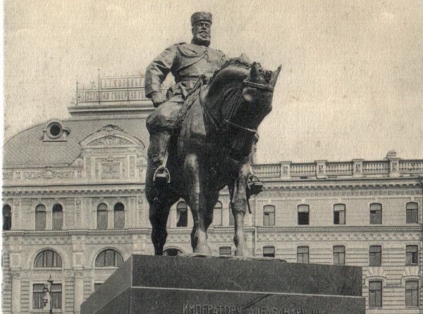 Конный памятник "Царю-Миротворцу" Александру III (1845 - 1894) работы русско-итальянского скульптора Павла Петровича (Паоло) Трубецкого (1866 - 1938).