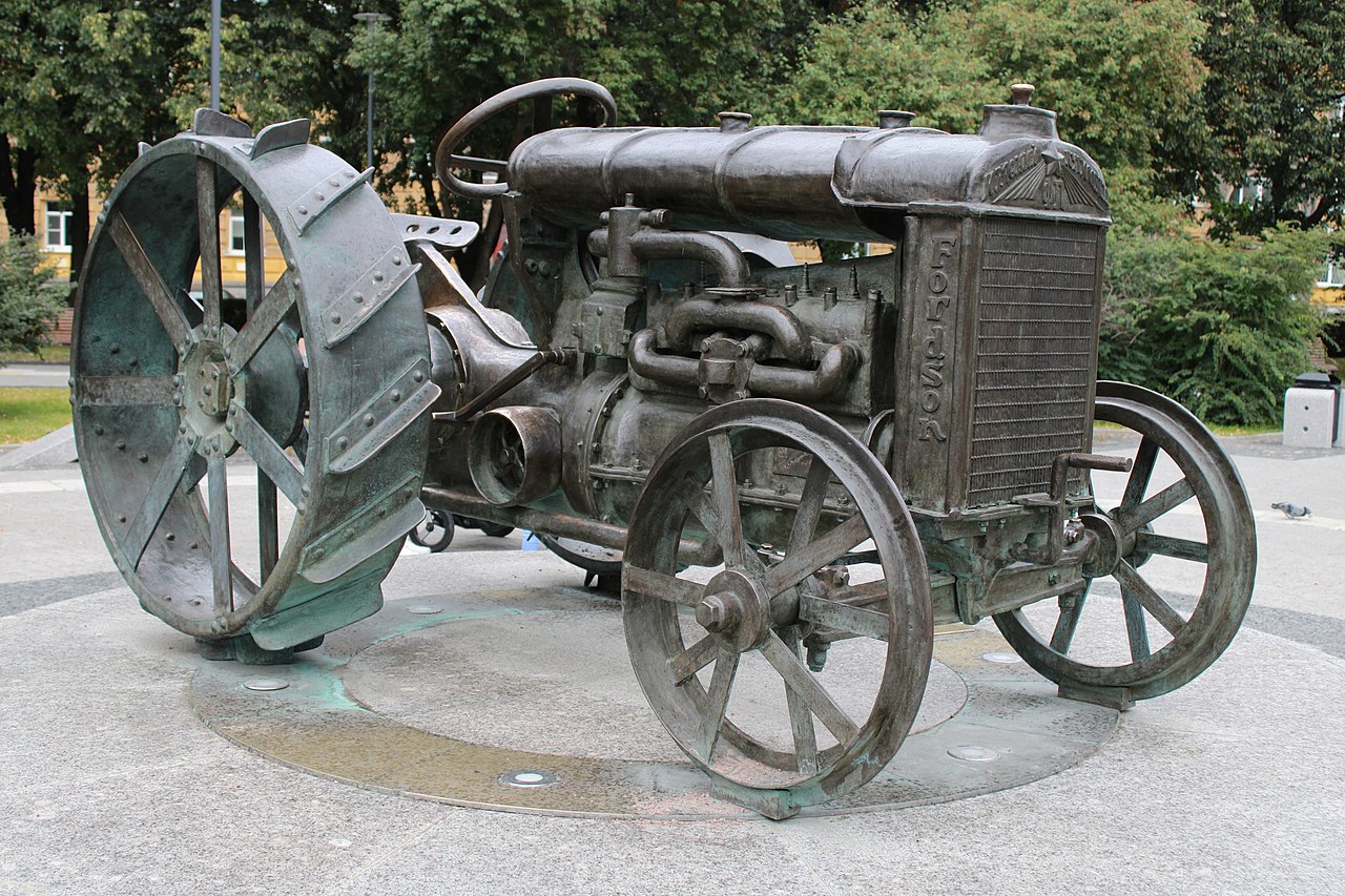 В центре сквера была установлена изготовленная в натуральную величину копия первенца отечественного тракторостроения — «Фордзона-Путиловца». Выпуск «железных коней, сменивших крестьянскую лошадку», был налажен на ленинградском заводе «Красный путиловец» (с 1934 года — Кировский) на базе американской модели «Форд» («Fordson-F»). Первые два трактора вышли из ворот завода 1 мая 1924 года, а до 1932 года путиловцы собрали свыше 45 тысяч машин!